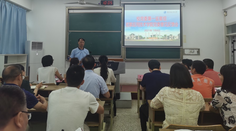 根据校党委巡察工作统一部署和安排,7月8日上午,校党委第一巡察组对应用技术学院党委巡察意见反馈会在滨江楼S504召开。校党委第一巡察组组长、校党委副书记、副校长王尧出席会议,第一巡察组全体成员、应用技术学院领导班子、全体教职工、学生党支部书记以及学生党员代表参加会议。会议由应用技术学院院长张军主持。