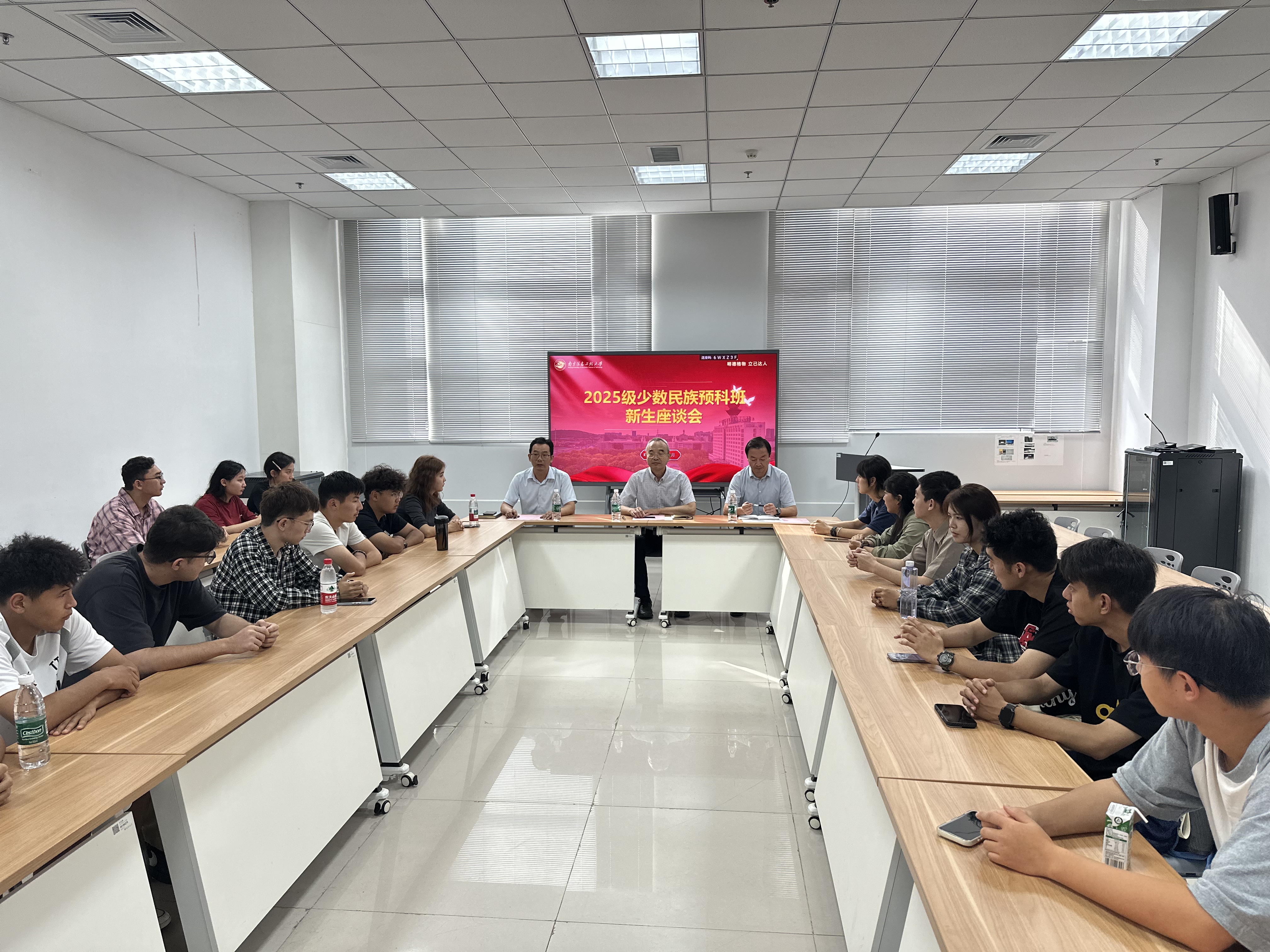 9月12日,应用技术学院在临江楼A104会议室举行2025级少数民族预科班新生座谈会。校总会计师胡明保出席会议,金牛湖产教融合园区相关负责人,2025级少数民族预科班辅导员、班主任及全体预科新生参加此次座谈会。会议由园区党委副书记、管委会副主任章胜主持。
