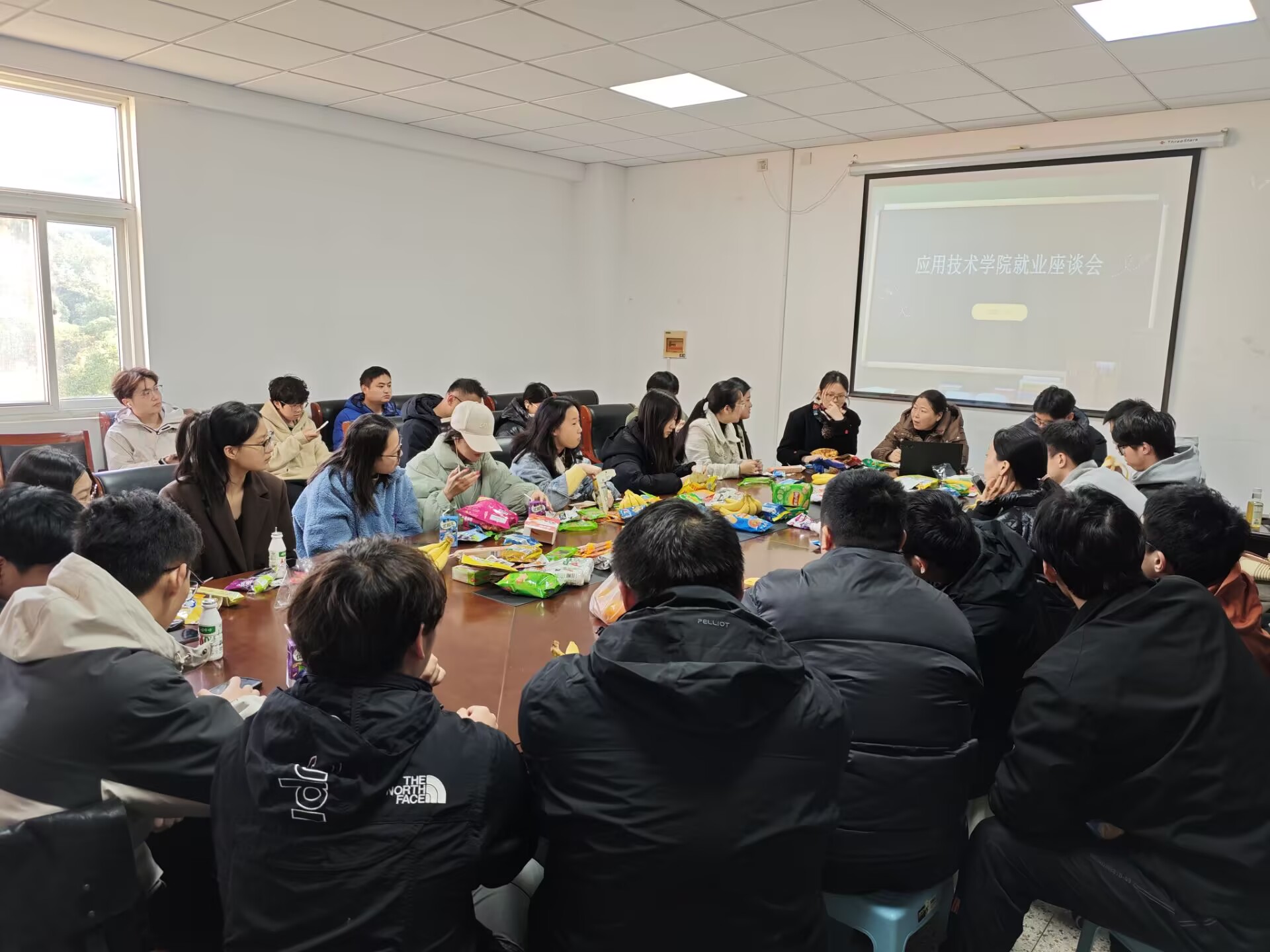 在25年秋招即将落下帷幕之际,为进一步关心关爱毕业生的成长,激发毕业学生不畏困难继续求职的决心和热情,搭建师生交流平台,应用技术学院于11月19日下午成功举办了2026届毕业生就业座谈会。毕业班辅导员李俊平、陈凯及学院26届就业同学参会。