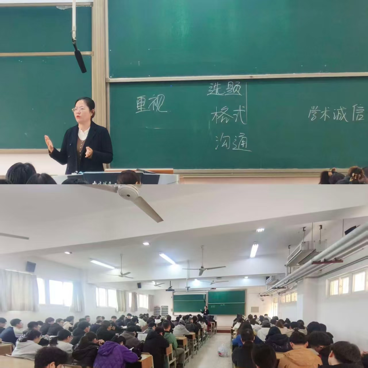 侯健敏以“重视”为主题开篇,强调了本科毕业(论文)设计的重要性和严肃性,并从论文选题、格式规范、与指导老师沟通等方面进行了详细剖析、提出了明确要求,并结合往年出现的问题做了重要提醒。最后侯健敏要求同学们一定要高度重视学术诚信、严守学术道德、杜绝学术不端行为。接着肖美兰从毕业设计工作的整体安排、毕业设计智能管理系统使用等方面做了相关解读,帮助学生们更好地规划和完成毕业论文(设计)任务。
